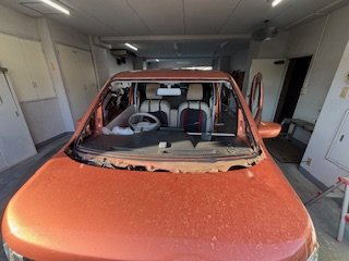 今回は、フロントガラス飛石交換修理をお預かり致しました。結構飛石にしては大きく、しかもガラスの端にある為、リペア作業は難しいです。