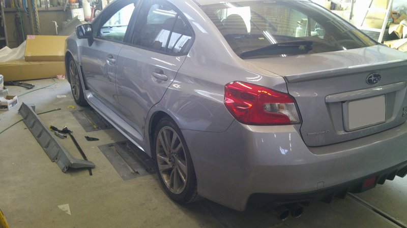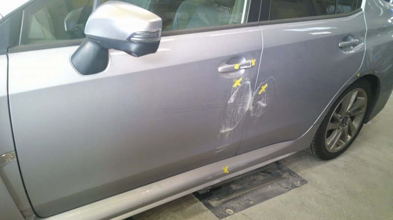 神奈川県座間市|WRX(スバル)のキズ・へこみ直し事例(左Fドア交換 左リヤドア鈑金)