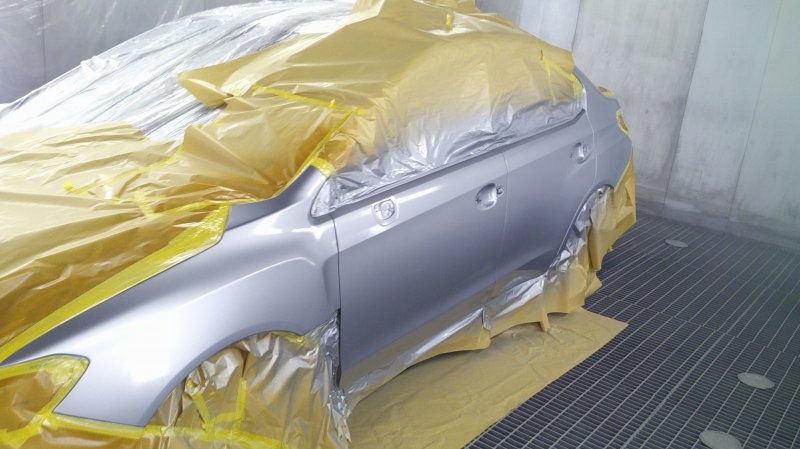 フロントフェンダーとリヤクォーターまで塗装する為、粗相前の脱脂とマスキング作業は、しっかり行います。