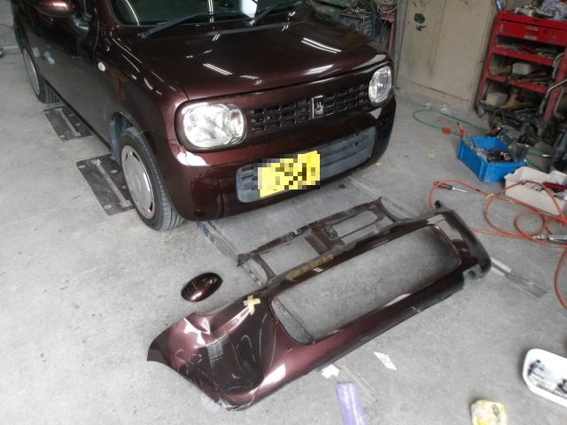 神奈川県座間市|アルトラパン(スズキ)のキズ・へこみ直し事例(Fバンパー交換 右Fフェンダー鈑金 右ドアミラー交換)