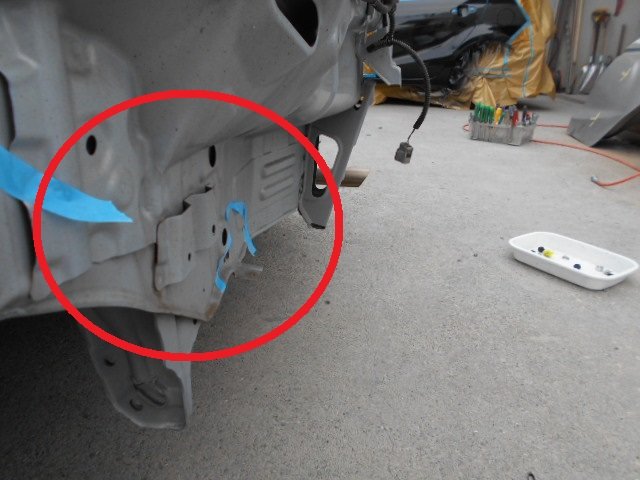 リヤ廻りの接触事故はバンパーの変形が見られるときは、高い確率でバックパネルの変形が見られます。