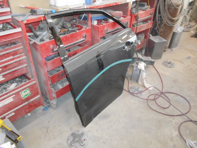 ドアはもちろん新品交換行いました。新しいドアにあわせて、左クォーターを鈑金、時間がかかりましたが、綺麗に直りました。