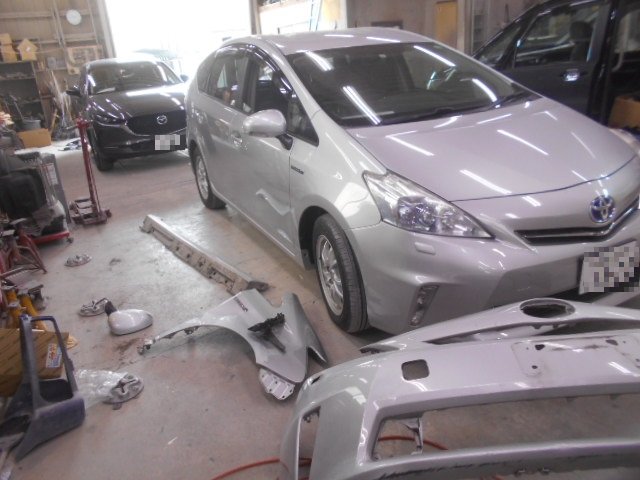 神奈川県座間市|プリウスα(トヨタ)のキズ・へこみ直し事例(右Fフェンダー交換、右Fドア交換)