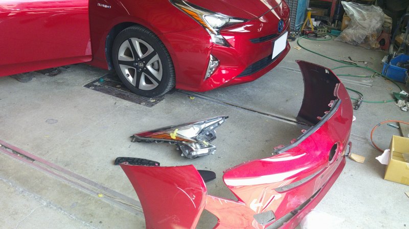 神奈川県座間市|プリウス(トヨタ)のキズ・へこみ直し事例(Fバンパー交換 右ヘッドライト交換 右Fフェンダー鈑金)