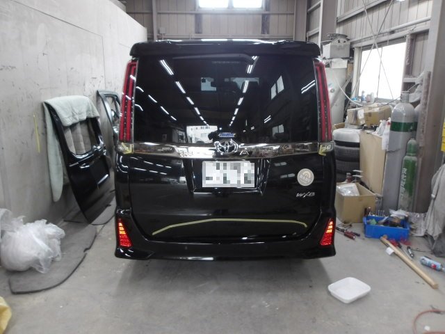 神奈川県座間市|ノア(トヨタ)のキズ・へこみ直し事例(リヤゲート交換 バックドアオープニングフレーム鈑金)