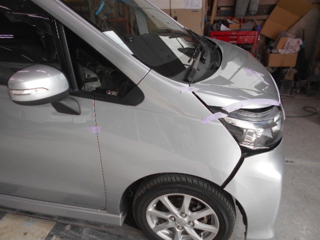 神奈川県座間市|eKカスタム(三菱)のキズ・へこみ直し事例(リヤゲート交換 リヤバンパー交換 バックパネル鈑金)