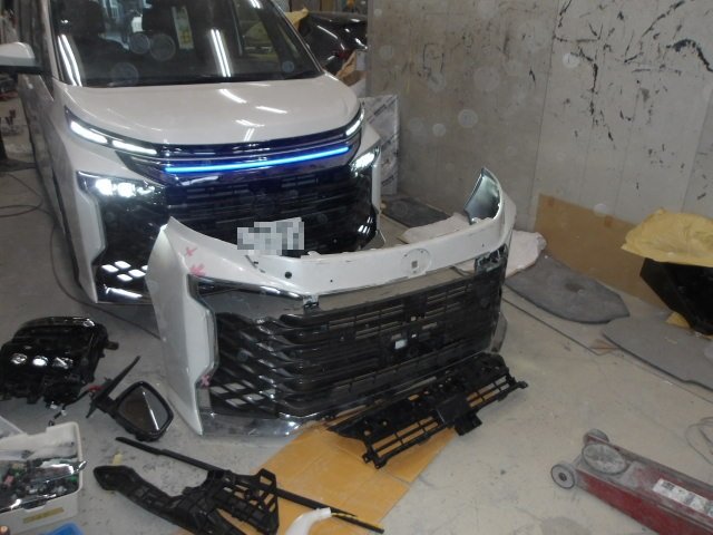 主に部品交換になりますが、純正オプションが付属していますので、取付位置を確認しながら行いました。大型のバンパーの為取付の際も新品のバンパーを気づ付けないように作業いたしました。