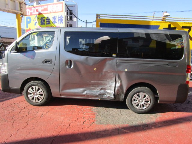 神奈川県座間市|キャラバン(日産)のキズ・へこみ直し事例(左Rドア交換 左クォーターカット交換)
