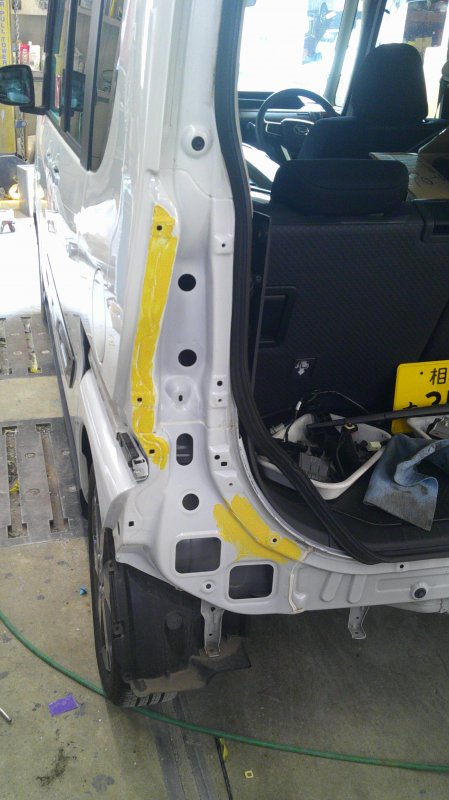 神奈川県座間市|ジムニー(スズキ)のキズ・へこみ直し事例(左ドア交換 左クォーター交換)