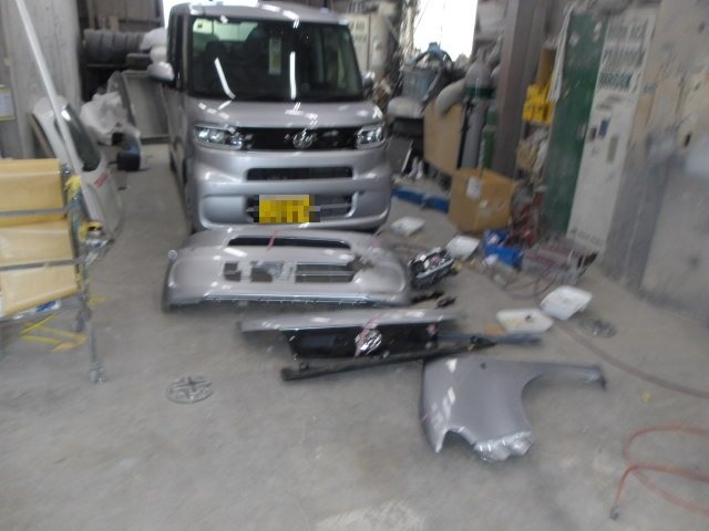 神奈川県座間市|タント(ダイハツ)のキズ・へこみ直し事例(フード交換 Fバンパー交換 左ライト交換 左Fフェンダー交換etc・・・)