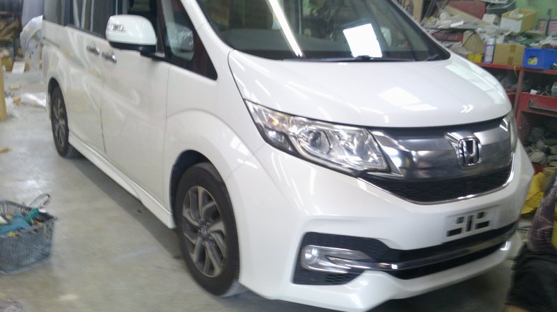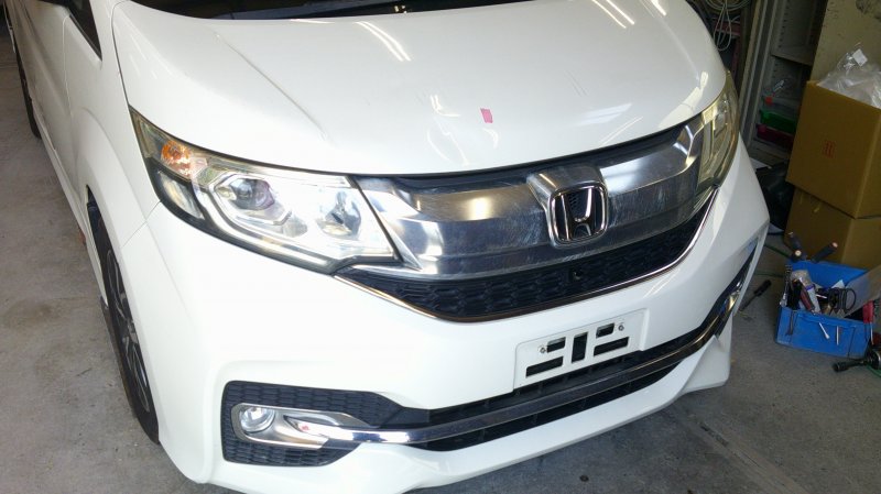 神奈川県座間市|ステップワゴンスパーダ(ホンダ)のキズ・へこみ直し事例(Fバンパー交換 フード鈑金 右ライト交換 右フェンダー鈑金)
