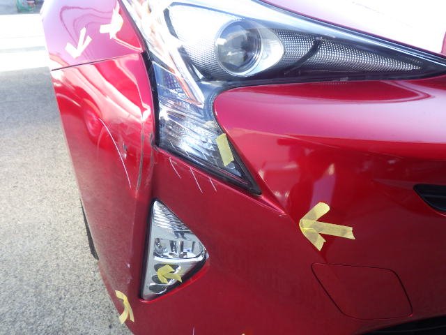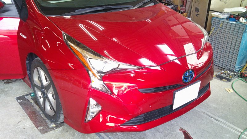 神奈川県座間市|プリウス(トヨタ)のキズ・へこみ直し事例(Fバンパー交換 右ヘッドライト交換 右Fフェンダー鈑金)