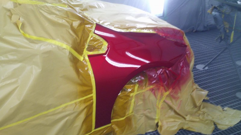 塗装作業はフロントバンパーが色付きの為、色違いが出ないように何度も時間をかけながら調色の確認をしながら塗装致します。