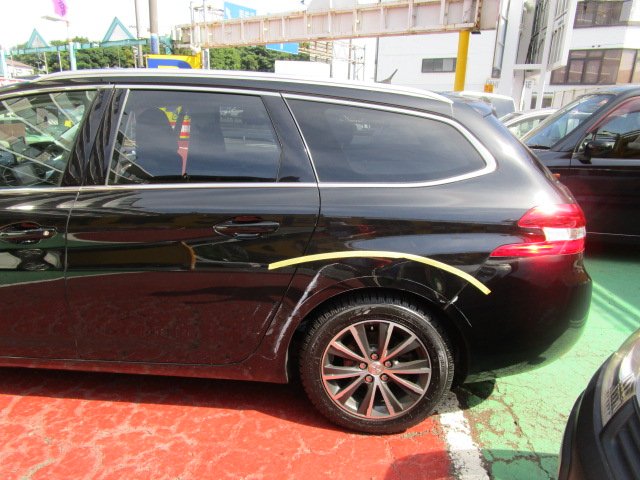 神奈川県座間市|308(プジョー)のキズ・へこみ直し事例(左Rドア鈑金 左クォーター鈑金 Rバンパー修理)