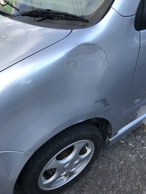 ハンドル操作を誤ってフロントフェンダーやフロントドアをぶつけてしまい、ご相談でご来店頂きました。