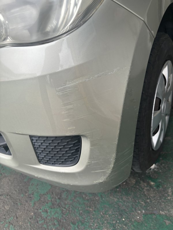 フロントバンパーを外壁にぶつけてしまい、損傷が出来き、修理のご相談でご来店を頂きました。