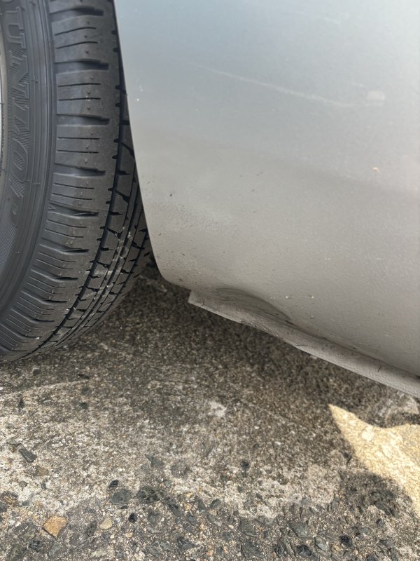 縁石ブロックなどに当ててしまい、大きな凹みができたため、修理のお問い合わせでお越し越