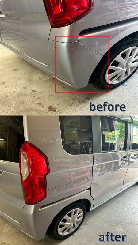 ホンダN-BOX リヤバンパーキズへこみ修理になります。