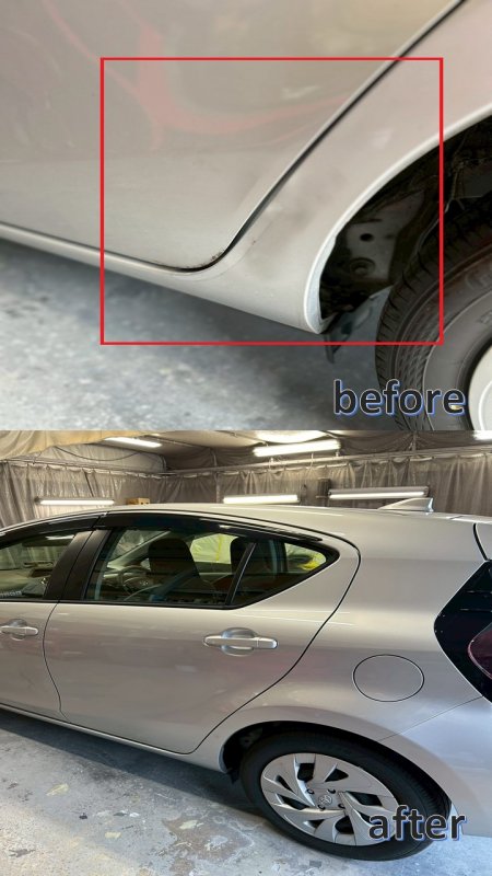 静岡県掛川市|アクア(トヨタ)のキズ・へこみ直し事例(リヤフェンダー周辺キズへこみ修理)