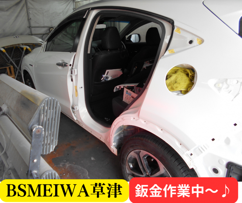 滋賀県大津市:ホンダヴェゼルの左リアドアとリアフェンダーを美しく修復!板金塗装事例