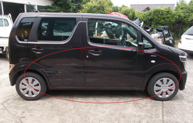 【いすみ市(夷隅町、大原町、岬町)・勝浦市・御宿町・大多喜町・睦沢町・一宮町】 ワゴンR 右側面(右フェンダー/右前ドア/右後ろドア/右サイドステップ/右クォーター) キズへこみ修理