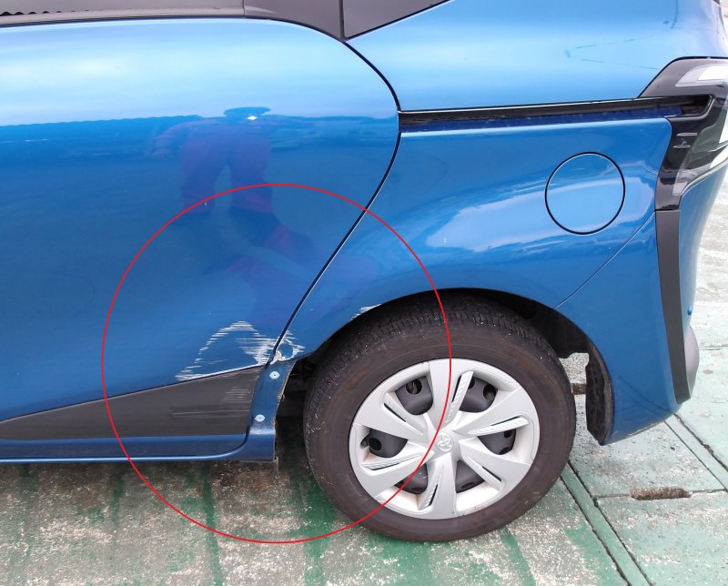 【いすみ市(夷隅町、大原町、岬町)・勝浦市・御宿町・大多喜町・睦沢町・一宮町】 シエンタ 左後ろドア/左クォーター キズへこみ修理