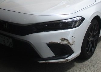 フロントバンパー、左ヘッドライト、右フェンダーは交換となります。