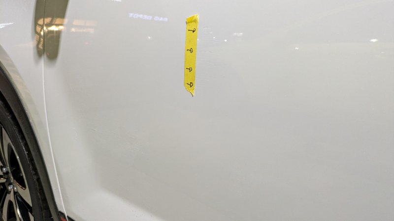 新潟県長岡市|フィット(ホンダ)のキズ・へこみ直し事例(右リアドアパネルのヘコミ 修理作業) 2024/09/27 - キズ・へこみ直し