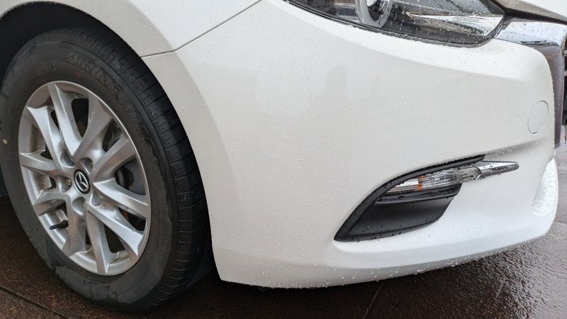 新潟県長岡市|アクセラ(マツダ)のキズ・へこみ直し事例(フロントバンパーヘコミ大)