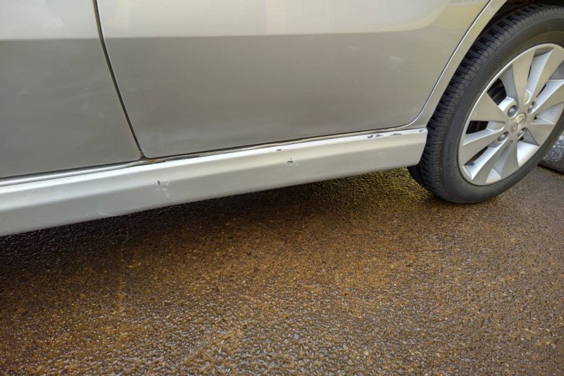 新潟県長岡市|AZワゴン(マツダ)のキズ・へこみ直し事例(ステップ縁石乗り上げによる左ステップ部のキズ・へこみ 損傷)