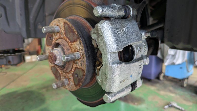 お客様より走行時に異音がするとのことでお車をチェックしたところ、キャリパーのピストンが固着しておりました。