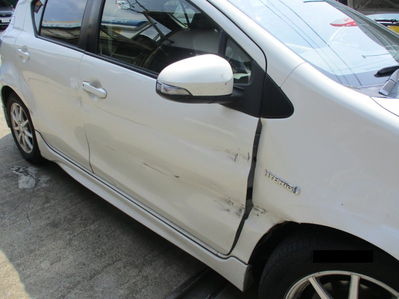 仙台市宮城野区 キズへこみ修理 スリキズ 左側リヤフェンダー ステップ トヨタプリウス