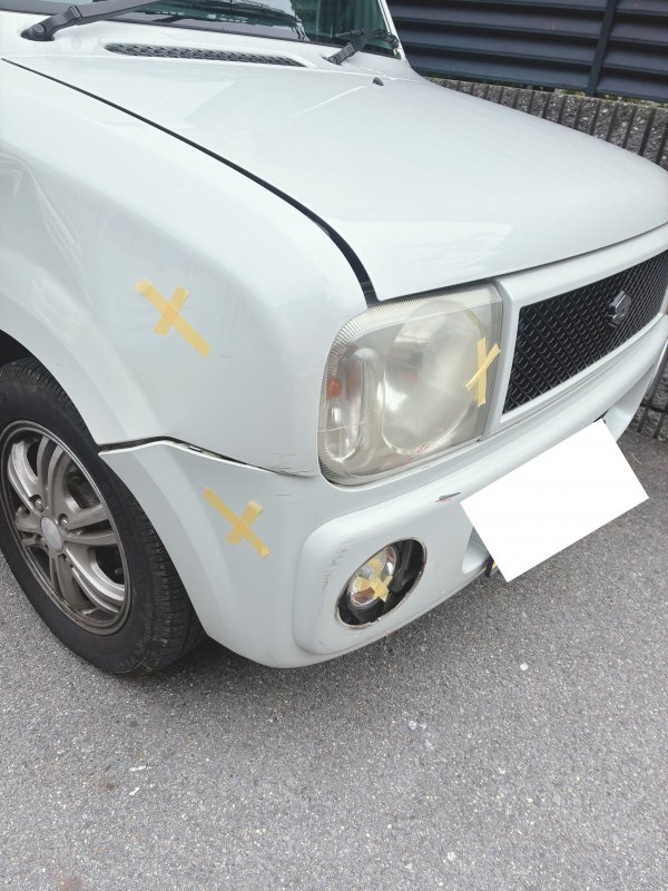 スズキ アルトラパン 右 フロントバンパー フロントフェンダー 傷 へこみ 鈑金 塗装 京都市 山科区