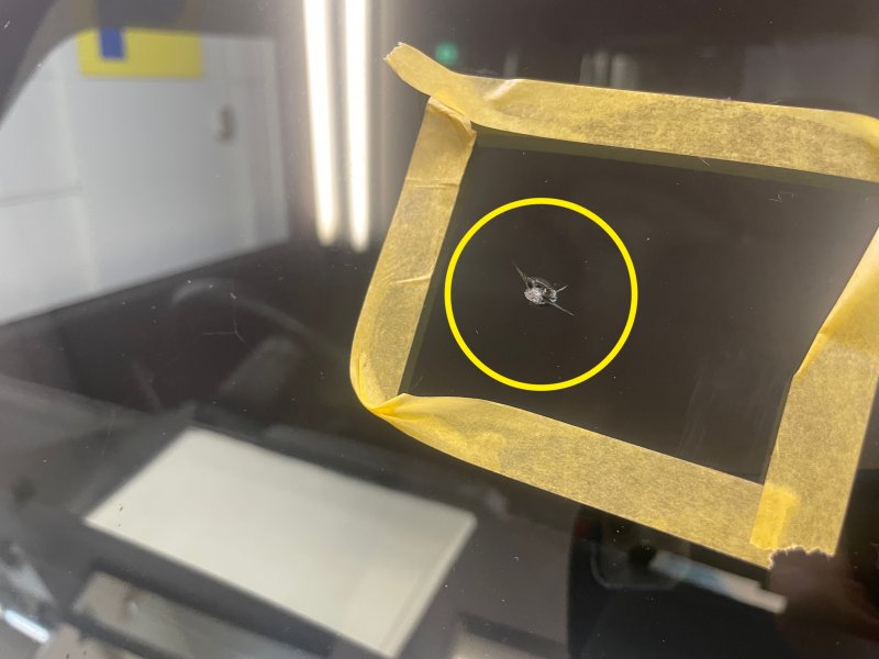 今回はダイハツハイゼットのフロントガラスの飛び石による割れの修理をさせていただきました。
