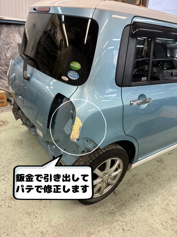 ダイハツ キャスト リアバンパー リアフェンダー テールランプ割れ 傷へこみ 部品交換 修理 塗装 鈑金 京都市 山科区