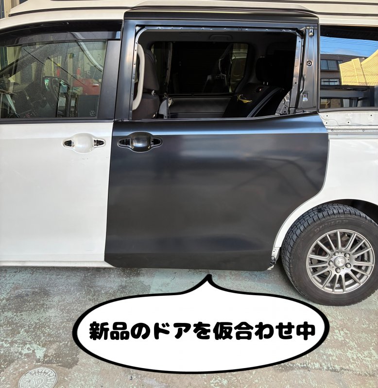 スライドドアはへこみが大きいため新品パーツに交換させていただきます。