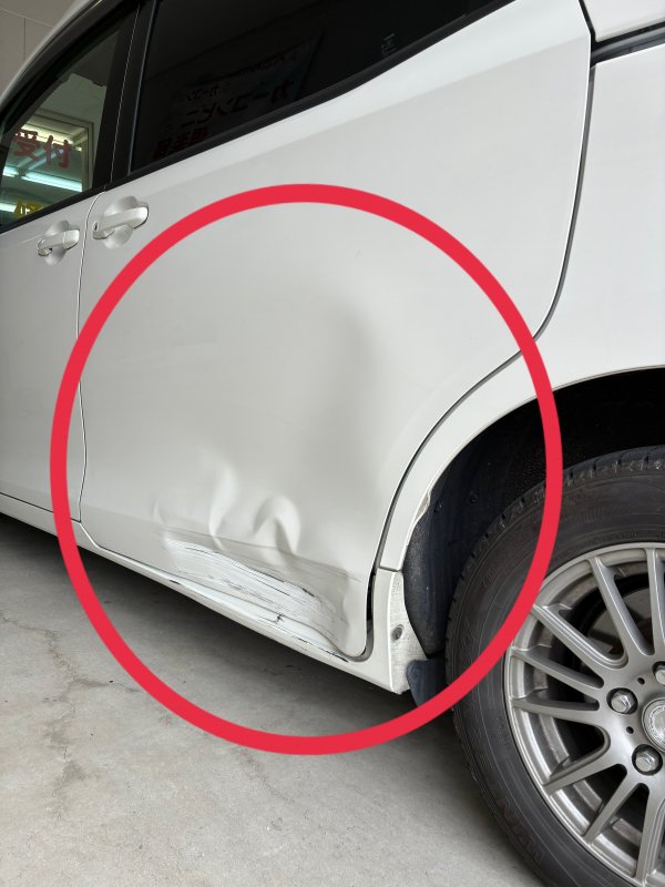 トヨタ ヴォクシー リアドア ロッカーパネル 傷 へこみ 鈑金 塗装 修理 パーツ交換 京都市 山科区