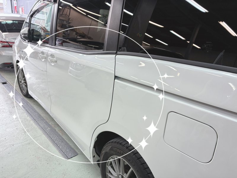 今回はトヨタヴォクシーのリアスライドドアと下のロッカーパネルの修理をさせていたただきました。