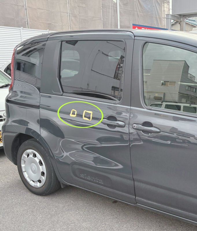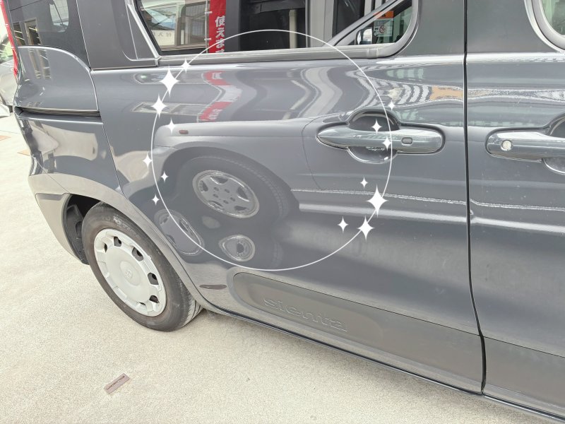 今回はトヨタシエンタのリアスライドドアの傷へこみを修理させていただきました。