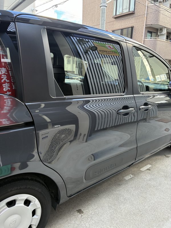 今回はトヨタシエンタのリアスライドドアの傷へこみを修理させていただきました。