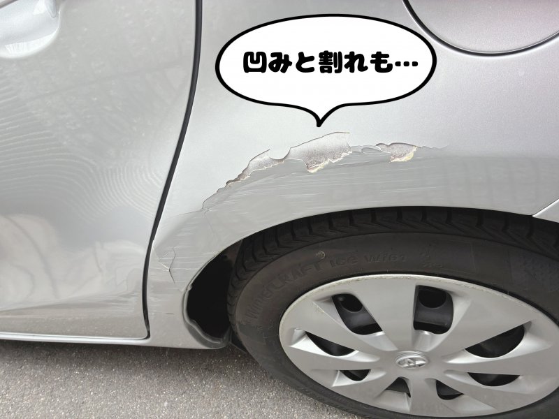 | 修理の箇所・サービス内容 | リアドアからフェンダーにかけての傷へこみ修理 |