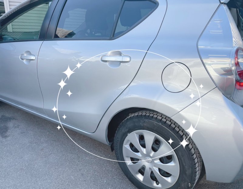 今回はトヨタアクアのリアドアからリアフェンダーにかけての傷とへこみを鈑金修理をさせていただきました。