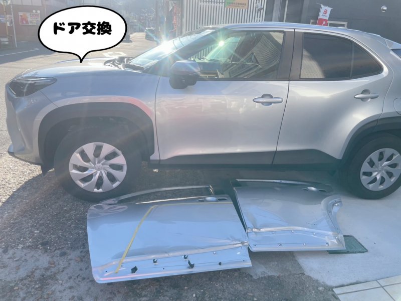 トヨタ ヤリスクロス 左側面 フロントドア リアドア 鈑金 塗装 修理 京都市 山科区