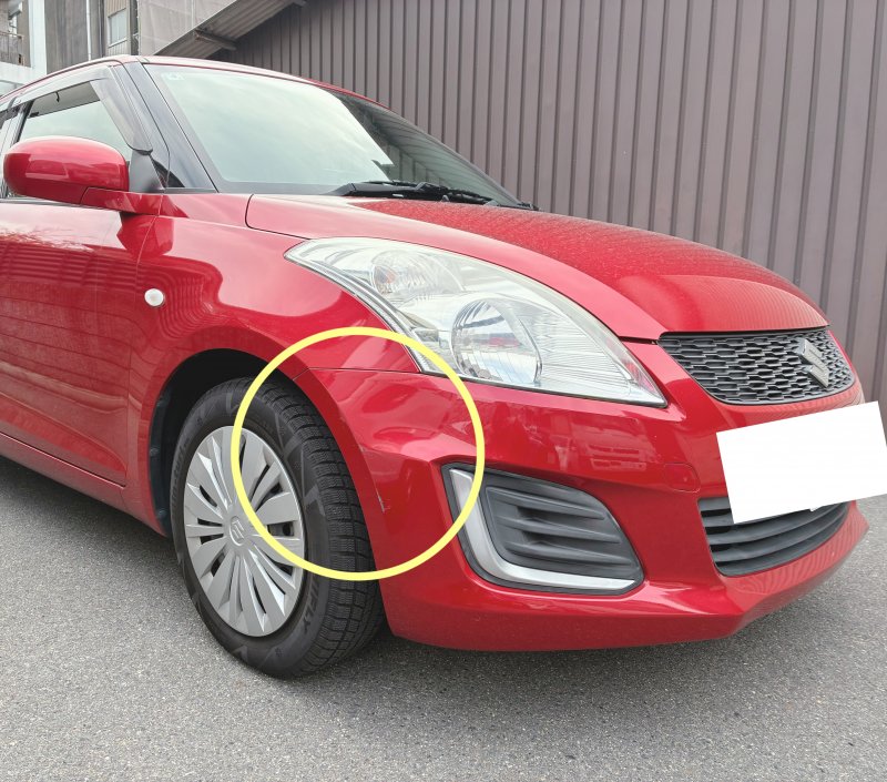 今回はスズキスイフトのフロントバンパー傷の修理をさせていただきました。