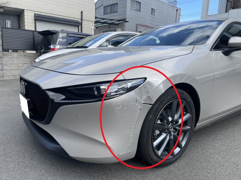 マツダ MAZDA3 バンパー フロントフェンダー 傷 へこみ 修理 板金 塗装 滋賀 大津
