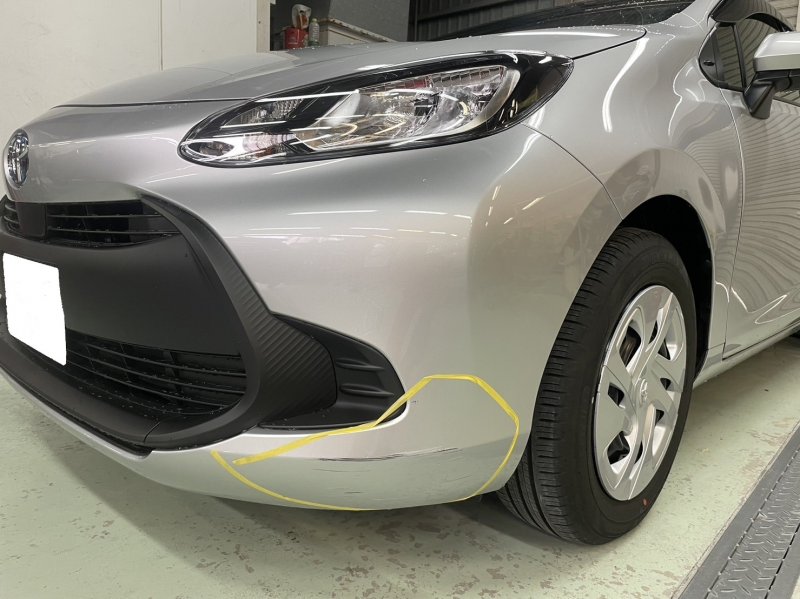 トヨタ ヤリスのフロントバンパー、フェンダーの修理
