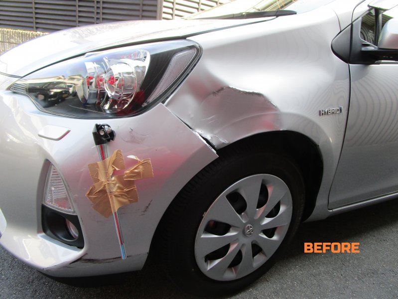 滋賀県 大津市 トヨタ ヤリス ドア バンパー 傷 へこみ 板金 塗装 修理