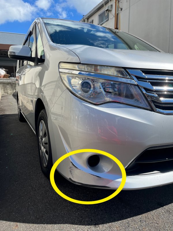 日産 セレナ フロントバンパー 傷 修理 塗装 京都市 山科区