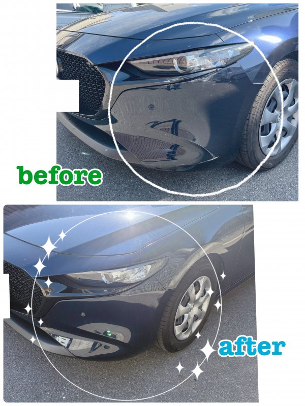 マツダ マツダ3 フロントバンパー 傷 修理 京都市 山科区 2025/10/28 - キズ・へこみ直し