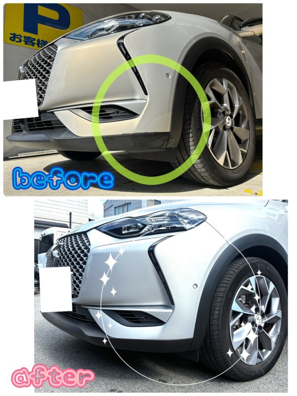 シトロエン DS3 フロントバンパー 傷 修理 塗装 パーツ交換 京都市 山科区